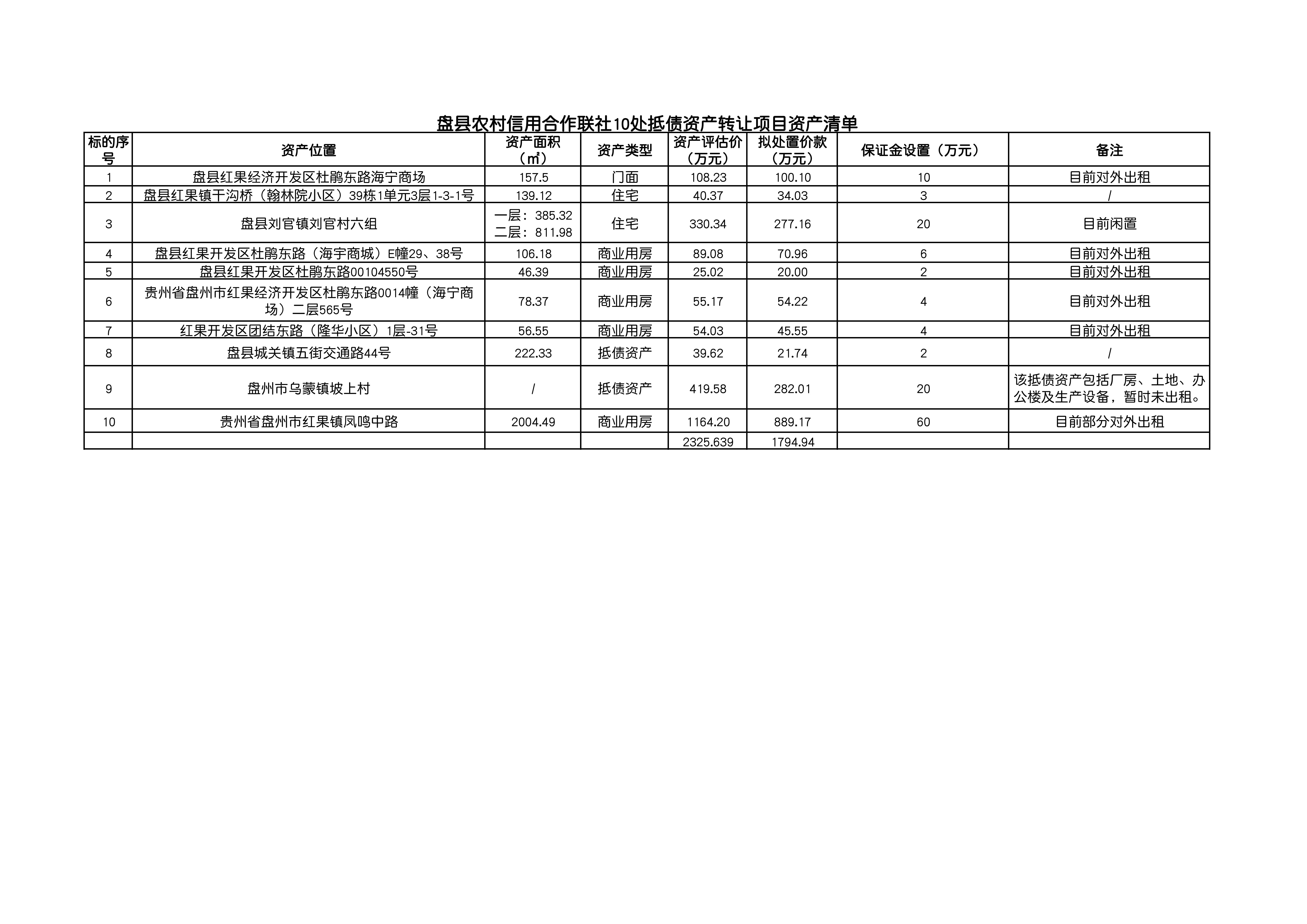 盤縣農(nóng)村信用合作聯(lián)社10處抵債資產(chǎn)轉讓項目